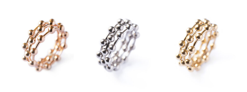 Découvrez « Whisper by Nadia », 3 bagues crées pour être collectionnées, partagées et composer votre propre version avec vos couleurs d’or préférées